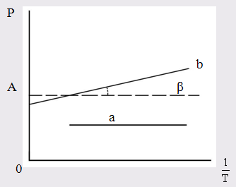 Вещества с μ = 0 состоят из симметричных молекул (например О2 , СО2 , СS2 , молекулы многих углеводородов). В электрическом поле в таких молекулах возникает индуцированный дипольный момент. Поляризация молекул этого типа не зависит от температуры (рис. 3). Для случая молекул постоянных диполей (прямая а; рис. 3) отрезок ординаты ОА = а определяет величину поляризуемости α, а tgβ = b – величину дипольного момента μ Полная поляризация молекул может наблюдаться или в статическом электрическом поле, или в электромагнитном поле низкой частоты, но не в поле высокой частоты, где диполи не успевают ориентироваться. Поэтому, например, в поле низкочастотного инфракрасного излучения происходит и электронная, и атомная поляризация, а в более высокочастотном поле видимого света – только электронная поляризация (Рэл = 4/3πNА αэл ), т.к. при высокочастотных колебаниях успевают смещаться только очень лёгкие частицы – электроны. Для неполярных веществ: РОР = 0 и Р = РД ≈ РЭЛ .