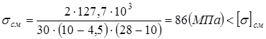- допускаемое напряжение на смятие: при стальной ступице и спокойной нагрузке