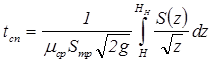 Время опорожнения определяется по формуле: