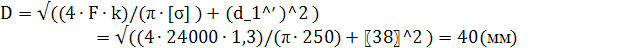 где: k –коэффициент, учитывающий скручивание тела гайки, k=1,3 ; [s] - допускаемое напряжение сжатия или растяжения ; [s]=250 МПа;