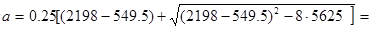 Радиальная: Fr1=Fr2=tga×Ft1/cosb[1.c.303] Fr1=tg20×1908/cos14,53°=374 Н Осевая: Fa1=Fa2=Ft1×tgb[1.c.303] Fa1=tg14,53°×1908=214 Н Выбираем предварительно подшипники: Выбираем шариковые радиальные подшипники легкой узкой серии 205 d1=25мм, D=52мм, В=15мм Определяем расстояния между точками приложения сил: l1=В/2+b1/2+ b2/2+10=70+20+7+8=105 мм; l2=b/2+42=40+42=82 мм. Определяем опорные реакции в вертикальной плоскости: ∑ Ma=0; -Rb×(l+2×l1)+Fa1×d1/2+Fr1×l1 =0 Rb=Fr1(l+2×l1)/(2×l1+l)=Fr1=284 H ∑ Mb=0; Ra×(l+2×l1)+Fa×d1/2-Fr1×(l+2×l1)=0 Ra= Fa×d1/2-Fr1×(l+2×l1)/(l+2×l1)=Fr1=90 H Проверка: ∑Y=0; -Ra-Rb+2×Fr1=0; -284 - 90+ 374 = 0 Определяем опорные реакции в горизонтальной плоскости: ∑Ma=0; -Fв×l2+Rb×(l+2×l1)-Ft×(l+2×l1)=0 Rb=(Ft×(l+2×l1)- Fв ×l2)/(l+2×l1)=(1908×105+1044×82)/210=1811 Н Таблица