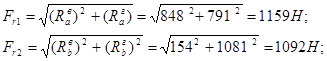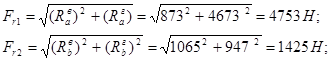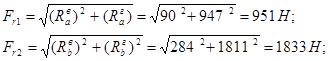6.2 Подбор подшипников для промежуточного вала Суммарные реакции для вертикальной и горизонтальной плоскостей: