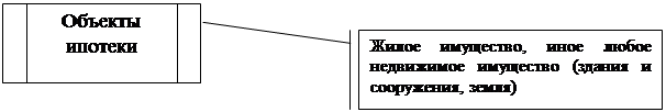 Рис. 1.1 - Основные участники и объекты ипотеки 2. Нормативно-правовое регулирование ипотеки Зарождение в нашей стране рыночной экономики на рубеже конца 80х начала 90х гг. дало основание для возникновения и развития целого ряда институтов, прежде всего, финансового и экономического толка, нормальное функционирование которых было невозможно при командно-административной системе хозяйствования, господствовавшей на протяжении почти 70ти лет. Естественно, что существование подобных институтов не может являться полноценным и защищенным без их законодательно оформленного и определенного статуса. Не стало исключением и ипотека. В течение последних двадцати лет законодателем была проделана серьезная работа в данном отношении, что вылилось в итоге в сложившуюся сегодня систему нормативно-правого регулирования данной области. Такая система представлена следующими основными источниками права, которые регулируют правоотношения в сфере ипотеки и ипотечного кредитования: - Федеральный закон “Об ипотеке (залоге недвижимости)” № 102-ФЗ от 16.07.1998 г.; - Федеральный закон “Жилищный кодекс Российской Федерации” № 188-ФЗ от 29.12.2004 г.; - Федеральный закон “О государственной регистрации прав на недвижимое имущество и сделок с ним” № 122-ФЗ от 21.07.1997 г.; - Федеральный закон “О кредитных историях” № 218-ФЗ от 30.12.2004 г.; - постановление Правительства “Об утверждении Правил предоставления молодым семьям субсидий на приобретение жилья в рамках реализации подпрограммы “Обеспечение жильем молодых семей” федеральной целевой программы “Жилище” на 2002-2010 гг. № 285 от 13.05.2006 г. Приведенные выше нормативно-правовые акты определяют основания возникновения ипотеки, которые в свою очередь можно разделить на два принципа: