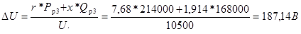 Определение потерь напряжений в линиях. Величина допустимой потери напряжения для всех линий равна 5 % от номинального напряжения сети (500В). Расчет потери напряжения в линиях: В линии