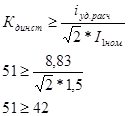 КСХ – коэффициент схемы, зависящий от схемы соединения трансформатора тока; КТТ – коэффициент трансформации трансформатора тока. Ксх =1; Ктт