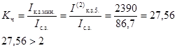 где: КСХ – коэффициент схемы, для полной и неполной «звезды» КСХ =1; КТТ - коэффициент трансформации тр-ра тока выбранного на Л4. Проверим уставки с помощью коэффициента чувствительности: