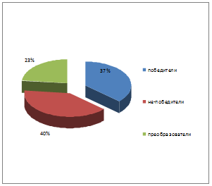 Таким образом, мы можем отметить группы «Не-победитель» и «Преобразователи», которые имеют эмоциональные проблемы, мешающие устанавливать контакты с людьми. У группы студентов с жизненным сценарием «Победитель» такие проблемы в эмоциональной сфере не встречаются. 3.Выявленные «помехи» эмоциональной сферы в межличностном общении у студентов со сценарием «Победитель», «Не-победитель» и «Преобразователь» можно представить в виде таблицы. Таблица 2.2 «Победители»