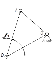 Рис. 3. Группа Асура II класс (4,5) 2 вид 3 порядок Механизм является механизмом второго класса, так как в его составе нет групп старше второго класса. Формула механизма 1.2 Кинематический анализ механизмаЗадача: составление векторных контуров для определения неизвестных параметров механизма таких, как неизвестные длинны, углы положения звеньев механизма, а также определение аналогов скоростей и ускорений. Рассмотрим механизм при Для удобства, все расчеты выполнены в среде MATCAD. 2001 Professional Входное звено (Рис.4)