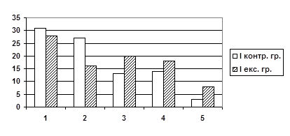 Діаграма 1. Порівняльна характеристика результатів анкетування експериментальної і контрольної груп до проведення корекційної роботи Результати опитування учнів контрольної групи практично змін не зазнали. Діаграма 2. Порівняльна характеристика результатів анкетування експериментальної і контрольної груп після проведення корекційної роботи