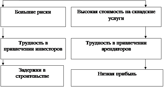 ВведениеПроект (от лат. projectus — брошенный вперед, выступающий, выдающийся вперёд, торчащий) — это уникальная (в отличие от операций) деятельность, имеющая начало и конец во времени, направленная на достижение заранее определённого результата цели, создание определённого, уникального продукта или услуги, при заданных ограничениях по ресурсам и срокам, а также требованиям к качеству и допустимому уровню риска. С точки зрения системного подхода, проект может рассматриваться как процесс перехода из исходного состояния в конечное – результат при участии ряда ограничений и механизмов. Управление проектами – методология организации, планирования, руководства, координации трудовых, финансовых и материально технических ресурсов на протяжении проектного цикла, направленное на эффективное достижение его целей путем применения современных методов, техники и технологии управления для достижения определенных в проекте результатов по составу и объему работ, стоимости, времени, качеству и удовлетворению участников проекта. 1. Резюме1.1 Цель проекта Предлагается проект строительства и открытия складского помещения в республике Татарстан, город Набережные Челны, промзона. К основным целям данного проекта можно отнести: · Строительство автоматизированного склада коллективного пользования. · Поиск арендаторов · Поиск квалифицированного персонала · Закупка оборудования 1.2 Результаты проекта · Получение коммерческой выгоды · Предоставление складского помещения в определенный срок, и удовлетворение спроса потребителей. · Появление новых рабочих мест. 1.3 Обоснование целесообразности осуществления проекта · В Набережных Челнах, на данный момент очень мало автоматизированных складских помещений. Эти склады очень востребованы. Мы предлагаем большие складские площади, эффективный и безошибочный контроль за перемещением материалов, сортировку прибывающих материалов и быструю отправку их на хранение. Мы обеспечиваем безопасные условия работы и соответствия с установленными регулирующими требованиями. Данный склад предназначен оказывать поддержку более широким логистическим функциям, обеспечивая комбинацию высокого уровня обслуживания потребителей и низких затрат. 2. Дерево проблем