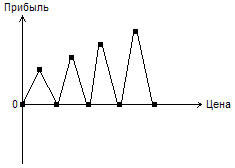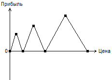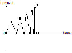 В вышеприведенных диаграммах все критические точки и каждая точка бесприбыльности, в которой есть перегиб движения прибыли по отношению к изменению цены, являются пороком эластичности. Если данные пороки поставить в ряд по отношению к повышению цены и зависимости изменения прибыли, то можно выявить некие тенденции, а с ними и некие дальнейшие перспективы повышения цены. Рассмотрим пороги в ряду по отношению к динамике цены. И если в этом ряду изменение прибыли будет иметь циклический вид, тогда можно будет разделить данные ряды динамики прибыли по показателю «цена» или отрезки на данных рядах динамики по следующим видам: · Пропорциональный: