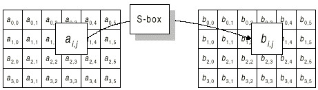 Табл. 1.3. Таблицы замены Применение описанного S-блока ко всем байтам состояния обозначено как ByteSub(State). Рисунок 1.5 иллюстрирует применение преобразования ByteSub к состоянию.