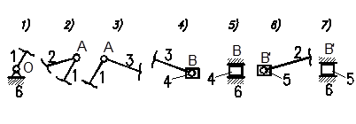 Рис. 2. Кинематические пары По характеру соприкосновения элементов звеньев кинематические пары являются низшими. По характеру относительного движения звеньев кинематические пары являются плоскими. По числу условий связи, наложенных на относительное движение звеньев, кинематические пары являются парами 5-го класса. По характеру замыкания элементов звеньев кинематические пары являются парами с геометрическим замыканием. 1.3 Определение степени подвижности механизмаСтепень подвижности плоского механизма определяется по формуле П.Л. Чебышева