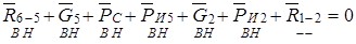 Рис. 10. Схема нагружения группы Ассура 2-5 В данной группе неизвестны реакции в кинематических парах R6-5 , R1-2 и R2-5 = - R5-2 , которые можно найти из уравнений равновесия звеньев и группы в целом. 1.
