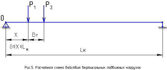 = = Расчетная схема на действие вертикальных подвижных нагрузок представлена на рисунке 5.