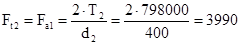 где α = 20º – угол зацепления. Окружное усилие на червяке Ft 1 и осевое на колеса Fа2