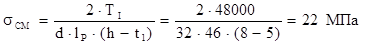 lP = l – b = 100 – 18 = 82 мм – длина рабочей грани шпонки,