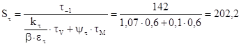 τm = tV = 10,1 МПа – постоянная составляющая цикла касательных напряжений (при отнулевом цикле изменения напряжений кручения);