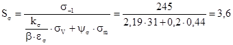 где Ss – коэффициент запаса усталостной прочности при изгибе