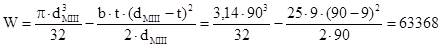 W – момент сопротивления изгибу сечения вала, имеющего шпоночный паз