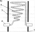 Рис. 5. Испарители прямого нагрева с тиглями с внутренним (а) и внешним (б) спиральными нагревателями 1 спираль, 2 тигель Тигельные испарители используют, как правило, для испарения больших количеств сыпучих диэлектрических материалов. Тигли изготавливают из тугоплавких металлов, кварца, графита, а также керамических материалов (нитрида бора, оксида алюминия корунда). Максимально допустимая температура кварца составляет 1400°С, графита 3000°С, оксида алюминия 1600°С. Два типа испарителей с тиглями из керамики показаны на рис.5 а, б. в испарителе первого типа нагреватель в виде плоской улиткообразный спирали 1 располагается в полости керамического тигля 2, куда насыпается испаряемый материал. Такой испаритель позволяет испарять с высокими скоростями большое количество вещества. В испарителе второго типа нагреватель в виде конусообразной спирали Iрасположен с внешней стороны керамического тигля 2. При равной мощности питания первый испаритель нагревается до более высокой температуры, чем второй. Однако достоинством второю является отсутствие контакта испаряемого материала со спиральным нагревателем. Эксплуатационным недостатком тигельных испарителей является то, что они инерционны, так как малая теплопроводность материала, из которого изготовляют тигель, не обеспечивает быстрого нагрева испаряемого вещества. Электронно-лучевые испарители.