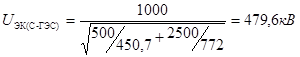 Выполним расчёт экономического напряжения UЭК для 1-го варианта схемы (участок ГЭС - ПС1):