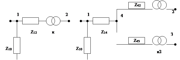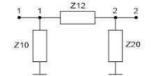 Рис. 8 Схема замещения воздушной линии электропередачи Заданными считаются продольные сопротивления Z12 и поперечные сопротивления Z10 и Z20. Численные значения указанных параметров рассчитываются по данным табл.28: