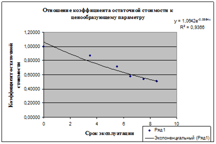 Результатом статистического анализа является зависимость величины мультипликатора стоимости от срока эксплуатации оборудования