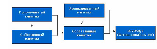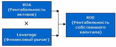 Рост этого показателя говорит о повышении эффективности использования активов предприятия и рассматривается как положительная тенденция, снижение говорит о наличии проблем в управлении. Если оборачиваемость активов снижается, то в процессе анализа необходимо более детально изучить показатели оборачиваемости капитала и установить, на каких стадиях кругооборота произошло замедление (или ускорение) движения средств. Нужно учитывать, что оборачиваемость активов также зависит и от органического строения капитала: чем большую долю занимает основной капитал, который оборачивается медленно, тем ниже коэффициент оборачиваемости и выше продолжительность оборота всего совокупного капитала. Оценка эффективности управления финансовой деятельностью. Для характеристики финансовой деятельности предприятия в модели DuPont используется основной показатель - Финансовый леверидж. Характеризует соотношение между заемным и собственным капиталом.