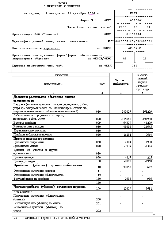 Министерство образования и науки Российской Федерации Восточно-Сибирский государственный технологический университет Институт подготовки кадров (ИПК) Кафедра «Бухгалтерский учет и аудит» ДИПЛОМНа тему Учет и контроль товаров в розничной торговле на примере ОАО "Новости" Студентки Конюковой Анны Юрьевны Улан – Удэ - 2008 Содержание учет контроль товар торговля Введение Глава I. Технология торговой деятельности 1.1 Основы функционирования предприятий торговли 1.2 Особенности организации розничной торговли 1.3 Общая характеристика ОАО «Новости» Глава II. Бухгалтерский учет товаров розничной торговли на примере ОАО «Новости» 2.1 Учет поступления товаров от поставщиков 2.2 Учет движения товаров 2.3 Учет расходов на продажу 2.4 Учет продажи товаров 2.5 Учет товарных потерь Глава III. Система внутреннего и внешнего контроля товарных операций 3.1 Порядок проведения инвентаризации 3.2 Учет результатов инвентаризации 3.3 Особенности проведения аудиторской проверки товарных операций 3.4 Рекомендации Заключение Литература Приложение Введение Розничная торговля является основным элементом потребительского рынка России. Российская розница – явление уникальное, одновременно совмещающее в себе новые технологии и пережитки прошлого. За пятнадцать лет она прошла большой и сложный путь от прилавка до самообслуживания, и сейчас озабочена отработкой технологий. Многие руководители магазинов сегодня согласны со словами владельца Wal-Mart Сэма Уолтона, что «в розничной торговле или у Вас есть талант организатора рабочего процесса, и тогда Ваш козырь - сокращение затрат и повышение эффективности, или же Вы талантливый купец». Именно снижение издержек и увеличение эффективности работы – то, над чем работают независимые магазины и розничные сети. По данным МЭРиТ в январе 2008 года темпы экономического роста сохранялись на высоком уровне, хотя и несколько замедлились по сравнению с предыдущим годом. Прирост ВВП достиг 7,4% (против 8,1% в целом за 2007 год по первой оценке Росстата). Динамика розничной торговли несколько замедлилась в сравнении с последним месяцем 2007 года, но ускорилась относительно января 2007 года, достигнув 14,1% (в январе 2007 г. - 13,8%). Устойчивый рост оборота розничной торговли в России связан с повышением реальных доходов населения. Увеличение реальных располагаемых денежных доходов населения в рассматриваемый период составил 12,9% (против 10,4% в целом за 2007 год). Прирост реальной заработной платы сохранился на среднегодовом уровне 2007 года и составил 15,8% (в целом в 2007 году прирост 16,2%). По словам экспертов Минэкономразвития, рост торговли в январе продолжал поддерживаться как увеличением доходов населения, так и банковским потребительским кредитованием. В Республике Бурятия оборот розничной торговли за январь 2008 года составил 4040,3 млн.руб, что в процентном соотношении к январю 2007 года составило 107,9 %. По оценкам аналитиков ситуация на рынке постоянно меняется: в результате слияния и приобретения новых компаний появляются мощные предприятия розничной торговли, способные конкурировать в борьбе за покупателя благодаря предоставлению продукции более высокого качества, снижению цены и расширению сферы услуг. Розничная торговля имеет ряд характерных особенностей - большой ассортимент товаров, специфический учет по нормативно-законодательной б