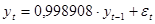 Значение статистики Дики-Фуллера превышает все приведённые в таблице критические значения. Это значит, что гипотеза о том, что ряд носит характер случайного блуждания, отвергнута быть не может. Если построить по данному ряду модель АР(1), то будут получены результаты:
