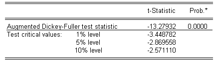 Преобразование заключается в делении фактическое значение на соответствующее ему трендовое значение. Проверю, не представляет ли собой данный ряд процесс случайного блуждания, для чего проведу тест Дики–Фуллера.