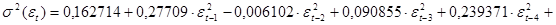 Поскольку все коэффициенты в модели дисперсии ошибки положительны, дисперсия ошибки будет принимать только положительные значения, что соответствует смыслу показателя. S.E. = 0,965396 < 2,258957 = S.D. То есть модель снижает дисперсию процесса.