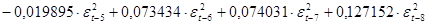 Модель дисперсии ошибки содержит отрицательные коэффициенты, что недопустимо, так как может повлечь получение отрицательного значения дисперсии. MA(2)ARCH(7):
