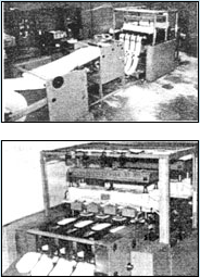 Рис.1 Технологическая линия транспортировки датчиков давления. При загрузке формировочной ванны одновременно происходит выгрузка поддонов с датчиками давления прошедшими процесс формировки. Поэтому ТУ загрузки и ТУ разгрузки работают синхронно. Нормальный рабочий режим устройств – автоматический. ТУ загрузки формирует для ТУ разгрузки следующие сигналы: - разрешение работы; - номер загружаемой ванны с датчиками; - окончание заталкивания поддона в ванну. От ТУ разгрузки на ТУ загрузки поступают следующие сигналы: - наличие сбоя; - готовность к погрузке поддона; - выбор номера турбонасосного агрегата для внедрения датчика давления. Процесс выгрузки поддона с ТУ разгрузки также автоматизирован. 2. Алгоритм работы устройств следующий - на ТУ загрузки задается номер требуемой формировочной ванны, который передается на ТУ разгрузки вместе с сигналом разрешающим работу; - при наличии информации от ТУ разгрузки и формировочной ванны о готовности к работе и разрешающего сигнала с места подготовки датчика давления, ТУ загрузки после погрузки поддона движется к заданной формировочной ванне и, достигнув ее, останавливается и переходит в режим ожидания; - ТУ разгрузки, при наличии разрешающего сигнала от рабочего места разгрузки и отсутствии поддона на ленте, движется к формировочной ванне, номер которой получен от ТУ загрузки; - ТУ разгрузки, достигнув заданной формировочной ванны останавливается перед ней и после непродолжительной паузы выдвигает ленту в сторону ванны для погрузки поддона; - после достижения лентой ТУ разгрузки крайнего положения, на ТУ загрузки поступает сигнал о готовности ТУ разгрузки к погрузке поддона; - ТУ загрузки вталкивает поддон с датчиками давления в ванну. При этом крайний поддон находящийся с противоположной стороны ванны выталкивается на ленту ТУ разгрузки; - на ТУ разгрузки после погрузки поддона срабатывает счетчик наличия поддона на ленте; лента с поддоном возвращается в исходное положение; - от ТУ загрузки при возврате заталкивающего механизма в исходное положение на ТУ разгрузки поступает сигнал о завершении заталкивания поддона; - лента ТУ разгрузки с поддоном возвращается в исходное положение; - после достижения лентой с поддоном исходного положения ТУ разгрузки после небольшой задержки движется к рабочему месту разгрузки; - достигнув места разгрузки, ТУ разгрузки останавливается и выдает сигнал готовности к разгрузке на стол управления комплекса разгрузочного; - исполнительные механизмы комплекса разгрузочного перемещают поддон с датчиками давления с ленты ТУ разгрузки на подготовительную ленту комплекса разгрузочного; - после того как поддон с датчиками давления перемещен на подготовительную ленту разгрузочного комплекса, все датчики давления на поддоне сбрасываются на стол под номером соответствующего насоса (турбонасосного агрегата). - после разгрузки поддона ТУ разгрузки переходит в режим ожидания и повторяет вышеописанный цикл после получения сигнала разрешающего движение от рабочего места разгрузки. - после того как будут загружены и соответственно выгружены все поддоны с датчиками давления на стол соответствующего насоса, ТУ загрузки снимает сигнал разрешающий работу ТУ разгрузки; - ТУ разгрузки, достигнув исходного положения (место разгрузки) после разгрузки пос