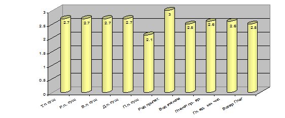 10 детей экспериментальной группы показали низкий уровень сформированности грамматических конструкций (сумма баллов: от 0 до 14 (степень 0 – 1,4). Структурирование различных видов грамматических конструкций у данных детей не сформировано. Функции словоизменения не развиты. Грамматические ошибки встречались практически в каждом задании. Помощь экспериментатора не способствовала правильному выполнению задания. 10 детей экспериментальной группы показали средний уровень сформированности грамматических конструкций (сумма баллов: от 15 до 24 (степень 1,5 – 2,4). Структурирование различных видов грамматических конструкций у данных детей сформировано недостаточно. Встречались грамматические ошибки, иногда требовалась помощь экспериментатора, которая не всегда приводит к правильному ответу. Некоторые задания были выполнены частично правильно, в более сложных случаях возникали затруднения и грамматические ошибки на согласование и управление. Детей экспериментальной группы с высоким уровнем сформированности грамматических конструкций в эксперименте не выявлено. Рассмотрим выполнение каждого задания детьми с ОНР. Сравнительный анализ результатов выполнения различных заданий детьми экспериментальной группы представлен на гистограмме 2. Гистограмма 2 Средний балл выполнения заданий детьми экспериментальной группы