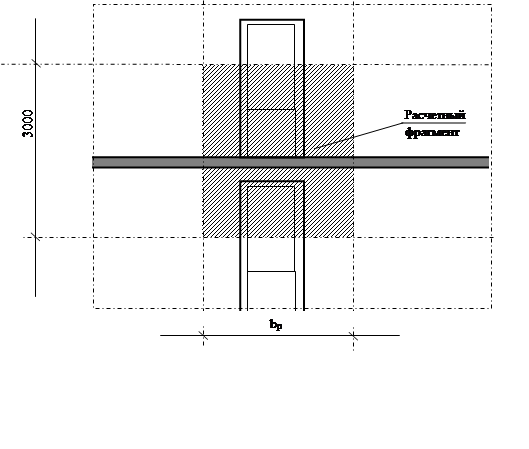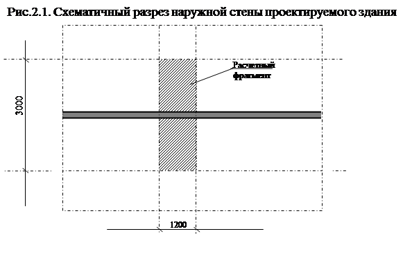 Рис.2.2. Расчетная схема фрагмента наружной стены здания для определения приведенного сопротивления теплопередаче участка без проемов (вид со стороны помещения)