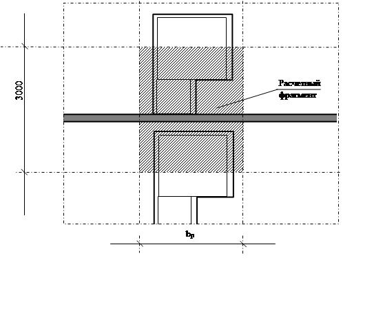 Рис.2.5. Расчетная схема фрагмента наружной стены здания для определения приведенного сопротивления теплопередаче участка с балконными дверями (вид со стороны помещения)