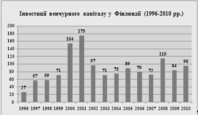 Рис. 2.2. Інвестиції венчурного капіталу в Фінляндії в період з 1996 по 2010 рр., млн.євро [26] Розподіл інвестицій за інвестиційними стадіями можна підсумувати таким чином. Компаній посівної стадії отримали 10 млн. євро (55 угод), стартапи - 56 мільйонів євро (161 угоду) і компанії пізнього етапу отримали 31 млн. євро (32 угоди). Якщо подивитися на фінансування по кожному етапі окремо, то на посівний стадії компанії одержали в середньому близько 180 000 євро за угоду. При стартапі це майже в два рази більше - до 350 000 євро, тоді як компанії пізнього етапу отримали приблизно 970 000 євро. Іншим вартим уваги елементом є стан кількості вільного капіталу фінських венчурних компаній. На даний момент ця цифра становить 176 мільйонів євро. Близько половини цієї суми зарезервовано для подальших інвестицій, а інша половина є доступною для нових портфельних компаній (84 млн. євро) [43]. Литва Литовський ринок венчурного капіталу все ще не розвинений. Кількість таких фондів створена в ЄС з 1980 року і перевищує 200 млрд. доларів. У Литві обсяг венчурного капіталу, вкладеного в десятиліття з 1 січня 1995 до 1 січня 2005 року склав 1400 млн. літів. Усього було реалізовано 166 інвестиційних проектів. Протягом останнього десятиліття, щорічний обсяг інвестицій венчурного капіталу на 1 млн. населення склав в 5 разів менше, ніж у середньому по ЄС, а кількість підприємств, які залучили інвестиції венчурного капіталу (на 1 млн. населення) у 4 рази менша середнього показника ЄС. Ринок венчурного капіталу країни значно відстає від країн-членів ЄС. Промоутери венчурних проектів в першу чергу стикаються з відсутністю стартового капіталу - багато відмінних ідей бізнесу не здатні залучити такий капітал. У Литві, на венчурний капітал для запуску і розвитку інноваційного бізнесу в останнє десятиліття припадало всього 19% від середнього показника ЄС. 15% венчурного капіталу була використано для фінансування запуску бізнесу, 19% - у сфері ІКТ. Середній розмір венчурного капіталу в інвестуванні досить великий і складає 8,2 млн. літів. Існує ще ринок ненадання капіталу і ранньої стадії фінансування для малого та середнього бізнесу в цілому і високотехнологічних малих і середніх підприємств зокрема. Існуючі фонди венчурного капіталу зацікавлені головним чином в розширенні фінансування. Важко сказати що-небудь про неформальний ринок венчурного капіталу в Литві, так як немає загальнодоступної інформації про неофіційний венчурний капітал в Литві. Податковий кодекс у Литві не робить виключення для венчурних інвестицій. Відповідно до закону всі литовські доходи від приросту капіталу обкладаються податком зі ставкою 15%, якщо цінні папери були продані менш ніж за один рік. Якщо є збитки з продажу цінних паперів - це може бути компенсовано. Не існує ніяких обмежень щодо розміру доходу від приросту капіталу. Не існує ніяких серйозних адміністративних перешкод, щоб стати бізнес-ангелом або розвивати мережу бізнес-ангелів. Число університетів, бізнес-інкубаторів та науково-технологічних парків забезпечить необхідну інфраструктуру [58]. Бельгія Операції венчурного капіталу зазвичай тут охоплюють насіння, запуск або розширення капіталу. Фандрайзинг — процес залучення грошових коштів та інших ресурсів організацією з метою реалізації як певного соціального проекту, так і серії проектів, об'єднаних однією спільн