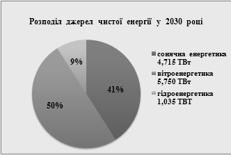 Рис. 3.4 Розподіл джерел чистої енергії в 2030 році Що ж до України - то даного виду енергії тут слід очікувати хіба що років за 30-40. На даний момент таким шляхом йдуть лише такі країни як: США, Великобританія, Австралія, Канада, Нова Зеландія, та Філіппіни. Висновки до розділу На даний час важко аналізувати стан венчурного бізнесу в Україні. Головною причиною того є нерозвиненість даного виду бізнесу в нашій країні. Проте, не лише в нашій країні спостерігається така несприятлива ситуація. За найближчі декілька років кардинально змінити теперішній стан розвитку венчурного бізнесу в Україні неможливо. Для цього знадобиться декілька десятків років. Просто інвестиційний клімат нашої країни ще є несприятливим для даного роду інвестицій. Адже нові винаходи, розробки, ноу-хау можуть бути зосереджені у найрозвинутіших країнах світу. У них є всі для цього можливості. Українську економіку необхідно зробити привабливою для іноземних інвесторів. Існують певні історичні фактори інвестиційної привабливості України. До них можна віднести такі: вигідне геополітичне розміщення; високий рівень природно-ресурсної забезпеченості; рівень інфраструктури; дешева кваліфікована робоча сила та місткий споживчий ринок. Дані фактори є пріоритетними для економіки нашої держави. Дані історичні переваги слід зберігати. Адже так показує світовий досвід. Малий інноваційний бізнес є базою та основним живильним венчурним середовищем капіталу. На частку дрібних високотехнологічних фірм у світі припадає більше 85% обсягу коштів ризикового фінансування. Важливе місце в системі венчурного інвестування займають інноваційно орієнтовані корпорації, які здійснюють наступальну ринкову стратегію. Ринок спільного інвестування в Україні почав активно діяти в 2006 році. Це досить швидкі темпи для української економіки. Для подальшого пристосування венчурного бізнесу до українських умов знадобиться безліч теорій та моделей провідних науковців та економістів, які зможуть знайти шляхи розвитку даного виду бізнесу в нашій країні. ВИСНОВКИ Проаналізувавши усе вище сказане можна зробити висновок, що венчурний бізнес досягнув значного розвитку лише в США та деяких країнах Європи. Навіть у світі даний вид бізнесу з’явився зовсім недавно. На жаль, в Україні, венчурний бізнес лише починає розвиватись. Проте підприємці роблять усе можливе, щоб він поширився в нашій країні. Надзвичайно складно пристосувати венчурний бізнес до українських умов через недосконалу економічну ситуацію в країні, нестабільну законодавчу базу та несприятливе економічне середовище. Адже, розвитку інформаційних технологій в Україні, як такого, не існує. Тому немає куди інвестувати. Для того, щоб змінити цю ситуацію слід здійснювати постійні дослідження, спостереження, аналіз та прогнозування економічної ситуації в країні та будувати на основі отриманих результатів моделі. Вдалося з’ясувати, що венчурний бізнес являється ризикованим бізнесом, який сформувався в Силіконовій долині в США, і звідти поступово поширився з національними відмінностями по всім розвиненим і великим країнам, що розвиваються (Китай, Індія, Бразилія та інші). До функцій венчурного бізнесу належать: впровадження ризикових проектів; прискорення інноваційного розвитку; здатність вивести економіку країни на вищий рів