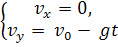 Этих формул достаточно, чтобы решить любую задачу о движении тела под действием силы тяжести. Тело брошено вертикально вверх В этом случае v0x = 0, gx = 0, v0y = v0 , gy = -g.