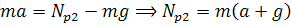 Рис.5. Изменение веса тела при движении с ускорением. Основное уравнение динамики: а) По третьему закону Ньютона модули сил Np1 = P1 . Следовательно, вес тела P1 = mg б) Значит