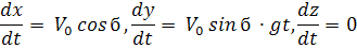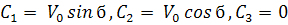 Начальные условия в нашей задаче имеют вид: при t=0 x=0, y=0 , z=0 , Удовлетворяя начальным условиям, будем иметь: