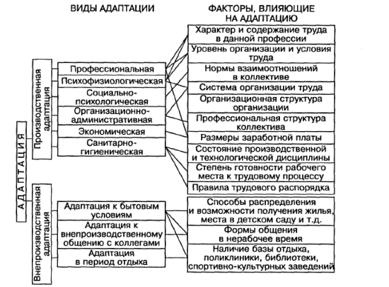 Рисунок 1.1 – Виды адаптации и факторы на нее влияющие В МОУ «Центр образования» организуются специальные адаптационные мероприятия для сотрудников, принятых в штат. Мероприятия включают в себя знакомство с традициями и обычаями школы, знакомство с педагогическим коллективом, образовательной программой, вводные инструктажи, вводные семинары, закрепление кураторов и т.д. Человек поступая на работу, включается в систему внутриорганизационных отношений, занимая в ней одновременно несколько позиций. Каждой позиции соответствует совокупность требований, норм, правил поведения, определяющих социальную роль человека в коллективе как работника, коллеги, подчинённого, руководителя, члена коллективного органа управления, общественной организации и т.п. От человека, занимающего каждую из названных позиций, ожидается соответствующее ей поведение. Поступая на работу в то или иное учебное заведение, человек имеет определённые цели, потребности, нормы поведения. В соответствии с ними сотрудник предъявляет определенные требования к организации, к условиям труда и его мотивации. Процесс взаимного приспособления, или трудовой адаптации, сотрудника и организации будет тем успешнее, чем в большей степени нормы и ценности коллектива являются или становятся нормами и ценностями сотрудника, чем быстрее и лучше он принимает, усваивает свои социальные роли в коллективе. 1.4 Обучение персонала Образование – процесс и результат усвоения систематизированных знаний, умений, навыков и способов поведения, необходимых для подготовки человека к жизни и труду. Уровень образования обусловливается требованиями производства, научно-техническим и культурным уровнем, а также общественными отношениями. Образование делится на два вида: общее и профессиональное. Образование должно осуществляться непрерывно. Профессиональное образование как процесс – это одно из звеньевединой системы непрерывного образования, а как результат – подготовленность человека к определенному виду трудовой деятельности, профессии, подтвержденная документом (аттестатом, дипломом, свидетельством) об окончании соответствующего учебногозаведения. В Российской Федерации профессиональное образование дает система учебных заведений, включающая: профессионально-технические училища, техникумы, высшие учебные заведения, институты и факультеты повышения квалификации и переподготовки кадров, учебные центры, специальные курсы и семинары. Профессиональное образование осуществляется как на основе государственных стандартов по подготовке специалистов, так и с использованием гибких учебных программ и сроков обучения. В дальнейшем речь пойдет о профессиональном образовании персонала, которое осуществляется посредством его обучения. Обучение персонала – основной путь получения профессионального образования. Это целенаправленно организованный, планомерно и систематически осуществляемый процесс овладения знаниями, умениями, навыками и способами общения под руководством опытных преподавателей, наставников, специалистов,руководителей и т.п. Следует различать три вида обучения. Подготовка кадров– планомерное и организованное обучение и выпуск квалифицированных кадров для всех областей человеческой деятельности, владеющих совокупностью специальных знаний, умен