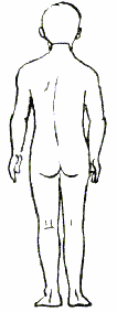 1.2.2. Нарушение осанки во фронтальной плоскости Нарушение осанки во фронтальной плоскости (рис.1 ) заключается в появлении изгиба позвоночника во фронтальной плоскости и называется сколиотическая или асимметричная осанка. Она характеризуется асимметрией между правой и левой половинами туловища, проявляющейся в разной высоте надплечий, различном положении лопаток как по высоте, так и по отношению к позвоночнику, к грудной стенке. Глубина и высота треугольников талии тоже различна. Мышцы на одной половине туловища чуть более рельефны, чем на другой. Линия остистых отростков формирует дугу, обращенную вершиной вправо или влево. При потягивании теменем вверх, подъеме рук, наклоне вперед и выполнении прочих приемов самокоррекции линия остистых отростков во фронтальной плоскости выпрямляется.