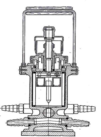 рис.13. Уровень состоит из двух и более измерительных головок (рис.14) – резервуаров, соединенных между собой гибкими шлангами. Измерительная головка(рис.13 и14) представляет собой небольшой закрытый резервуар, в верхней части которого установлена микропара 1, которая в принципе представляет собой специальную конструкцию микрометрического глубиномера. В нижней части головки имеют канал для соединения между собой с помощью шлангов 3 (рис.13). Измерительные головки вместе с нижним шлангом образуют систему сообщающихся сосудов. С помощью верхних шлангов 2 создается воздушная сеть для изолированной системы с одинаковым давлением в резервуарах.
