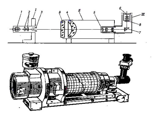 рис.17. Оптическая струна состоит из марки I зрительной трубы, включая визирную трубу II и наблюдательный телескоп III. Точечная марка I состоит из лампы 1, нить которой изображается коллектором 2 на точечной диафрагме 3. Марка снабжена пятью точечными диафрагмами для работы на разных расстояниях. Визирная труба состоит из сферического объектива 4 и наблюдательного микроскопа III, снабженного двумя сменными микрообъективами и двумя окулярами с перекрестиями и круговыми сетками. Призма 7 предназначена для измерения направления лучей с целью удобства работы. Изображение диафрагмы 3 точечной марки Iс тем или иным увеличением в зависимости от расстояния проектируется объективом 4 в предметную плоскость микроскопа III, микрообъектив 5 которого переносит изображение в плоскость окулярной сетки 8, где его рассматривает оператор через окуляр 6. Плоскопараллельная пластина 9 является оптическим компенсатором, ее наклоны позволяют измерять смещение точечной диафрагмы 3 с оптической оси. 2.7 Выбор метода контроля плоскостности По проведенному обзору методов и приборов контроля плоскостности можно сделать выводы. В основу методов и приборов, применяемых в настоящее время для высокоточного контроля плоскостности, положены механические и оптические принципы. Однако только оптические приборы и методы могут обеспечить высокую точность контроля плоскости и поверхностей большого протяжения. Механические методы в основном применяются в машиностроении и станкостроении. При контроле плоскостности с помощью поверочных плит погрешность измерения имеет большой разброс. Она обусловлена не только отклонением формы контролируемой поверхности, но и состоянием поверхности поверочной плиты. При контроле плоскостности с помощью уровня основными недостатками метода является большая чувствительность к температурным колебаниям. Оптические методы измерения плоскостности имеют широкое распространение и отличаются универсальностью и надежностью контроля. Оптические методы контроля плоскостности можно разделить на оптико-механические и оптико-электронные методы. К оптико-механическим относят измерение отклонений от плоскостности коллимационным и автоколлимационным методам, метод визирования. Оптико-электронные методы осуществляются с помощью визуальных и фотоэлектронных автоколлиматоров. Оптико-электронными называются приборы, позволяющие получать информацию о геометрических параметрах, пространственном положении и энергетическом состоянии излучающего объекта с помощью энергии излучения, преобразованной в электрический сигнал с последующей его отработкой и регистрацией. Информация об исследуемых объектах переносится оптическим излучением, а первичная обработка сопровождается преобразованием энергии оптического излучения в электрическую при помощи приемника оптического излучения. Оптико-электронные приборы и методы являются на сегодняшний день самыми перспективными. Таким образом, по проведенному обзору методов и приборов контроля было разработано оптико-электронное устройство для измерения контроля плоскостности поверхностей. За основу устройства был выбран плоскомер, так как у этого прибора высокая точность измерений, большая протяженность проверяемых поверхностей, надежность в работе и простота в эксплуатаци