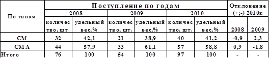 поступивших в Гродненское райпо за 2009-2010 гг. по типам. Как видно из таблицы 2.3.2 наибольшим спросом у потребителей пользуются стиральные машины типа СМА. Эти машины обладают повышенным качеством, так как все их процессы в этих агрегатах автоматизированы, чем выгодно отличает от машин типа СМ, где нету ни одной автоматической функции. Наименьший удельный вес занимают стиральные машины типа СМ-42,1% в 2009 году, 38,9в 2010, 41,2в 2010. Однако данные показывают, что данный тип стиральных машин еще пользуется устойчивым спросом, а также потребитель покупает стиральные машины типа СМ еще и потому, что долгое время на белорусском рынке не было других и у потребителей выработалась привычка покупать эти машины. Необходимо отметить, что не маловажным фактором для белорусского потребителя является цена, очень малое количество населения, особенно в сельской местности может позволить себе купить стиральные машины типа СМА.