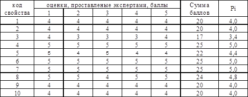 Исходя из требований предъявляемых потребителями эксперты проранжировали 10 наиболее важных свойств. Расчет коэффициентов весомости представлен в таблице 3.2.6. Таблица 3.2.6. Определение коэффициентов весомости свойств.