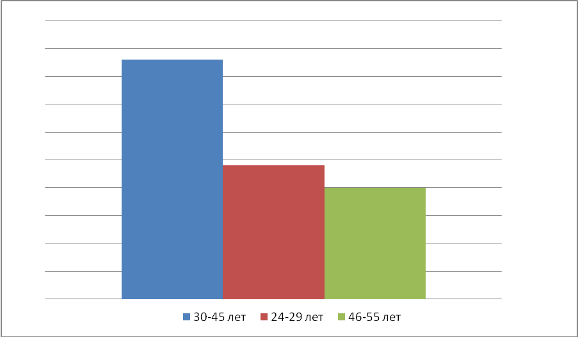 Большинство опрошенных занятые в бюджетной сфере (здравоохранение, просвещение, культура, искусство) – 14,7%, студенты и учащиеся – 14,7%, работники жилищно-коммунальных служб и бытового обслуживания – 10,9%, пенсионеры – 10,9%, работники торговли – 9,1%, кадровые офицеры – 7,6%, работники финансовых и кредитных организаций – 6,8%, энергетики – 4,8%, домохозяйки – 3,6% и т.д. В профессионально-должностных группах выделяется группа специалистов с высшим образованием, занятых в бюджетной сфере – 15,1%, студенты – 14,5%, служащие со средним специальным и профессиональным образованием – 10,9%, пенсионеры – 10,9%, руководители среднего звена – 9%, руководители высшего звена – 5,5%, неквалифицированные рабочие – 5,5%, специалисты коммерческих структур – 4,8% и т.д. Большая часть читателей газеты «Город» люди семейные – 65,5%, имеющие одного ребенка до 15 лет -33,3%, со средним уровнем доходов. Судя по тому, что трудно выделить среди читателей одну какую-либо группу, по каждому критерию, можно сделать вывод, что газета пользуется спросом у самых широких слоев населения, ее можно отнести к «семейным» газетам. Исходя из маркетинового исследования. Портрет читателей газеты «Город» в целом выглядит следующим образом: Женщины в среднем от 30 до 40 лет, со средним и среднеспециальным образованием, занятые в бюджетной сфере (здравоохранение, педагоги, культура). Семейные люди, имеющие в основном одного ребенка, проживающие со средним уровнем дохода. 2. Портрет читателей газеты «Московский Комсомолец на Амуре» Опрос, проводимый в апреле 2009 года (Приложение №4) для составления портрета читателей «Московского комсомольца» на Амуре», показал, что к газете «МК» на Амуре» женщины (54,3% опрошенных) проявляют немного больший интерес, чем мужчины (45,7%). Таблица 2.9 — возрастной критерий респондентов